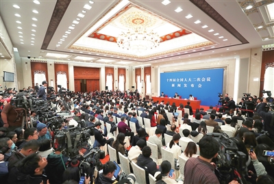 十四届全国人大二次会议4日中午举行新闻发布会,大会发言人娄勤俭就会议议程和人大有关工作回答了中外记者提问。