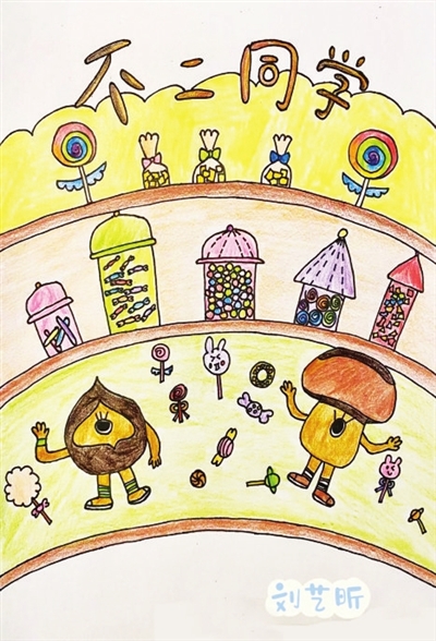 走出店门,我们都被对面两个又大又可爱的“独眼栗子人”吸引了过去。这家店名很有趣,叫“不二同学”,店里还不时飘出阵阵香味,各种五颜六色的糖果镶满了整面墙。店里还有精致的积木软糖、造型奇特的棒棒糖、多姿多彩的巧克力,让人眼花缭乱、目不暇接。走累了,还可以在休息区放松一下。我觉得这两家店可真不同,“老鼠窟”是中华老字号,店里的食品比较简单;卖零食的“不二同学”是新店,店里有绚丽多彩的灯光和种类丰富的糖果。“老鼠窟”的节奏非常快,吃完就要赶快走,因为后面还有很多人在等呢!“不二同学”就不一样了,你可以自由闲逛,不买东西只坐着休息也可以。