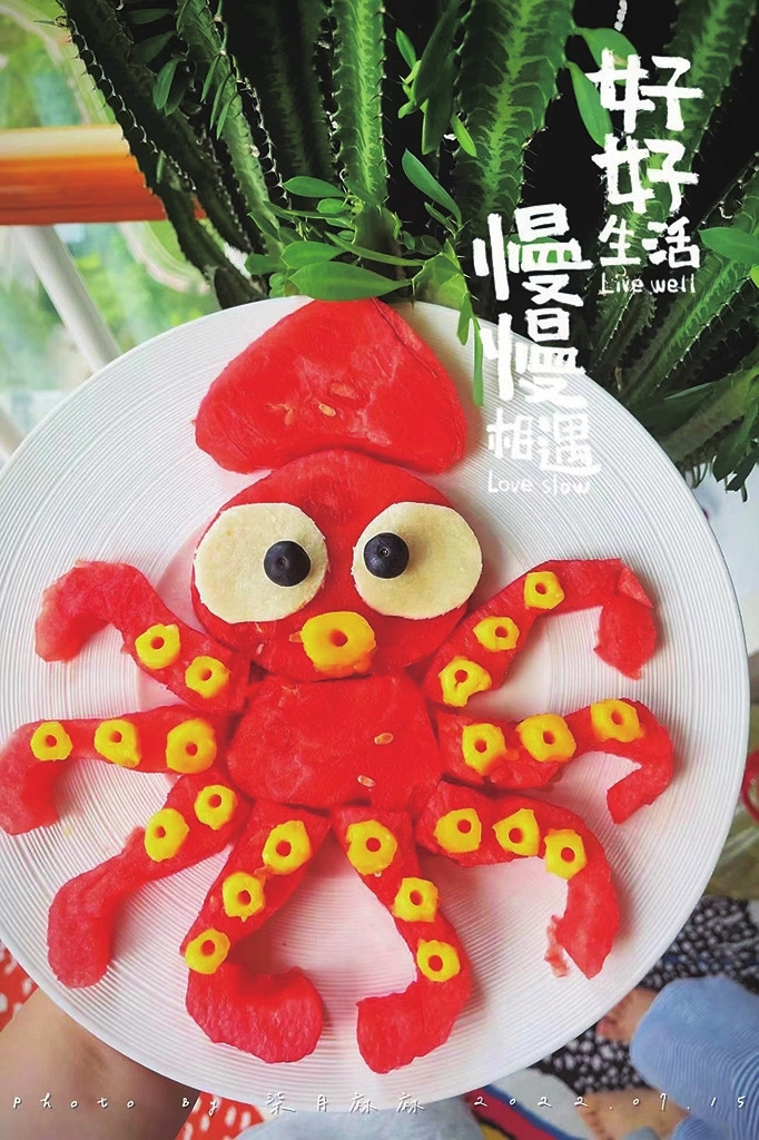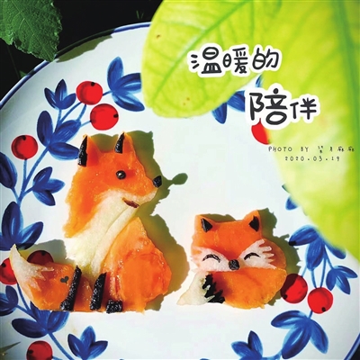 自2017年儿子出生后,赵婧就在儿子的餐食上动起了脑筋。最初,赵婧制作的早餐是以卡通小动物为主,用食材制作的叮当猫、章鱼、小狗、雄鹰、蚂蚁等,仿佛打开了新世界的大门,充分满足了儿子的好奇心,这种有趣的亲子互动方式也让赵婧非常享受。