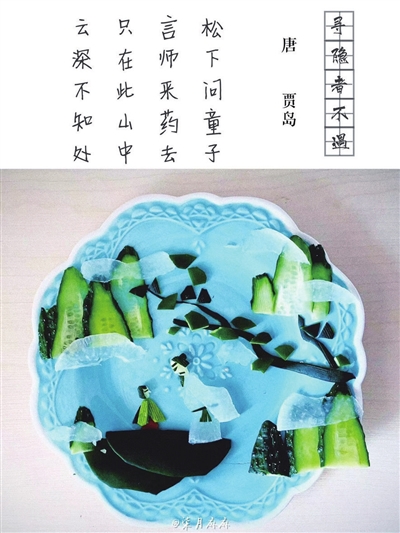 食材与构图巧妙搭配,画面与意境完美融合,这便是赵婧与儿子一起构思制作的古诗早餐。