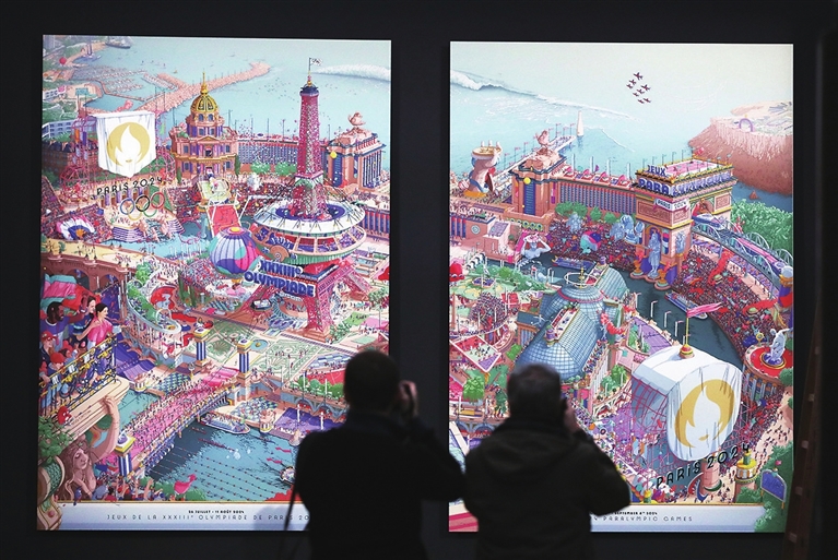“海报中一共‘藏’了8个巴黎奥运会吉祥物,需要花点时间才能找出来。奥运五环和残奥三色标志、大众马拉松跑、奥林匹克格言等,也都可以在里头找到。”加托尼说。这两张海报均由他手绘完成,整个创作过程一共花了约2000小时。
