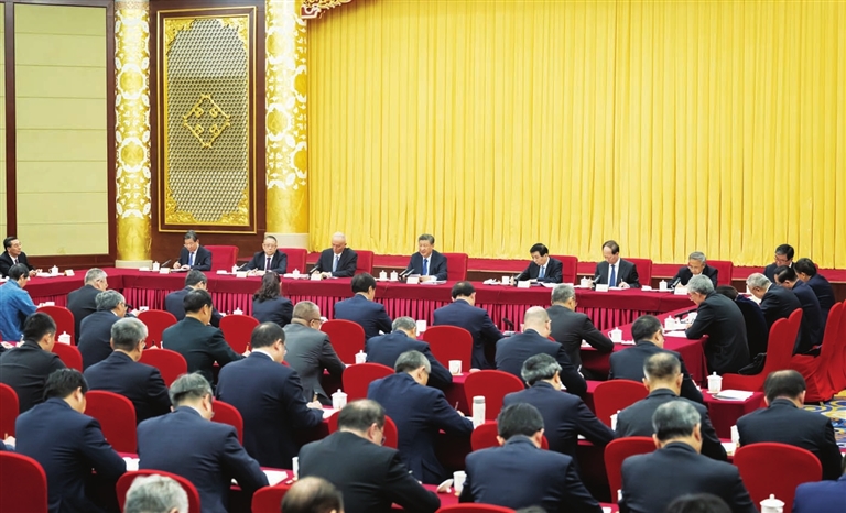中共中央政治局常委、全国政协主席王沪宁,中共中央政治局常委、中央办公厅主任蔡奇参加看望和讨论。