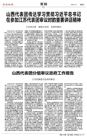 山西代表团传达学习贯彻习近平总书记在参加江苏代表团审议时的重要讲话精神