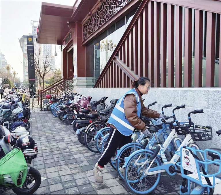 谈及自己的工作内容,王鑫表示:“其实很简单,就是把停放不规范的车辆重新摆放整齐,如果遇到沙尘、雨雪天摆放车辆的时候还要把车子擦干净,让市民能够看起来舒心,骑起来放心。平峰时间,我就会将区域内的闲置车辆推一推,让车子‘活’起来,才能发挥它的价值。”