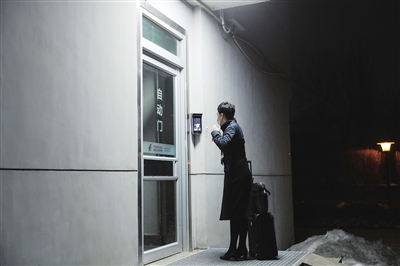 4:50,宗圆在运行大厅门禁前进行面容识别。