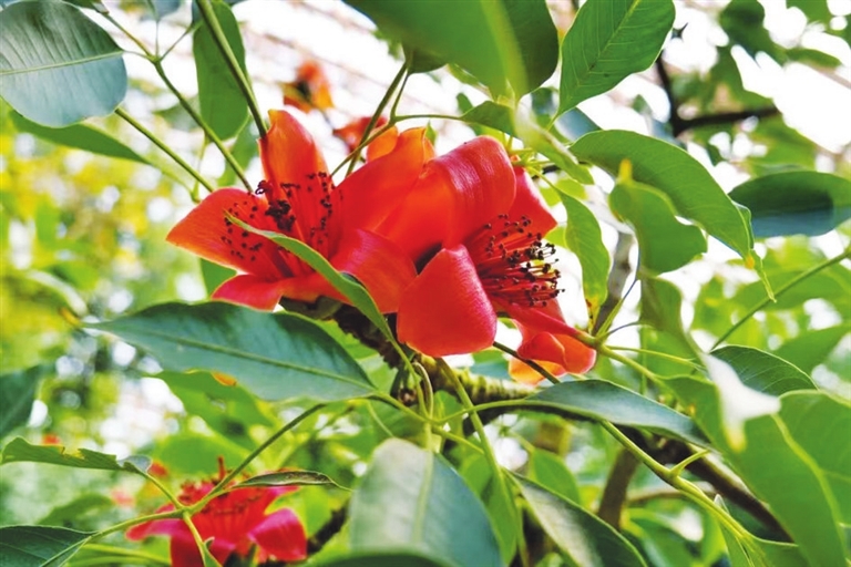 当下开得最艳的要数木棉、朱槿。木棉花如同尽情燃烧、欢快跳跃的火苗,它们簇拥在枝头,仿佛是一团团燃烧的火焰,给春天增添了无尽的活力和热情。朱槿花颜色各异,红色的热情奔放、粉色的柔和淡雅、白色的清新纯洁、黄色的鲜艳夺目、橙色的明亮欢快。观赏地点:热带雨林馆。