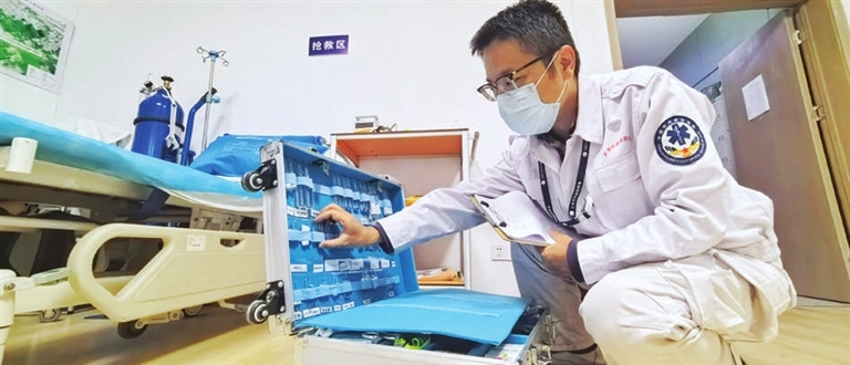 这里的医护人员平均年龄45岁,临床经验都很丰富。56岁的康巨源副主任医师,曾在综合医院工作过,到机场急救中心工作已有15年,常能见到他拎着沉甸甸的急救设备在航站楼里一路飞奔。他说:“我们的‘主战场’包括两座航站楼,总面积8万平方米,每次‘出诊’对体力也是考验。患者,亦是旅客,我们既要救急,还要帮忙协调机票退改签等事宜。”