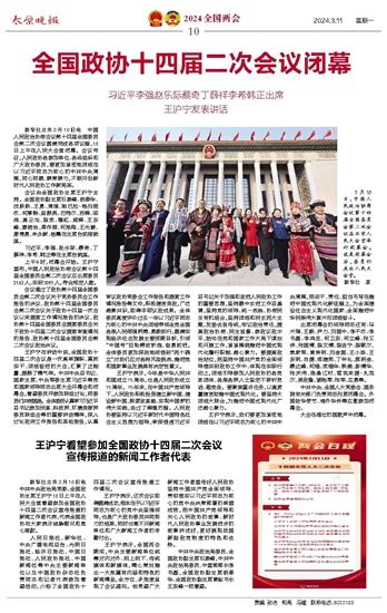 王沪宁看望参加全国政协十四届二次会议宣传报道的新闻工作者代表