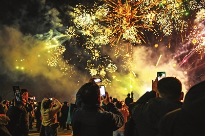 3月11日,省级非物质文化遗产“二月二南街焰火”在太原古县城南门外精彩上演。 李学军 宋卫东 摄影报道