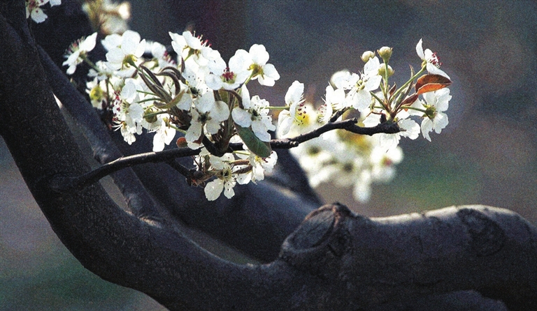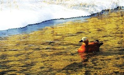 春的信息大家都会想到“鸭先知”。大地回暖,溪水、河冰在渐渐融化,万种形态的冰花中,畅想着水流的春之曲。拍摄时,需要观察融化冰层的形态差异,为造型创造条件,配合适当光影下波光粼粼的流水,便会引发人们对于春的联想。苏轼诗曰:“竹外桃花三两枝,春江水暖鸭先知。”鸭是对于水温变化最为敏感的动物,当残冰融化,鸭戏其中,正是春意荡漾的图照。而杏花、桃花露出艳丽,则更是春天到来的特征。在拍摄杏花、桃花或初绽的枝芽、飘逸的柳枝时,构图取景需尽量特写或注意枝条形态。拍摄这样的画面,重要的是画面的背景取舍要暗调、干净,避免亮色或杂乱,尽量用大光圈,虚化背景,以突出主题。构图上尽量采用对角线构图,避免直线或竖线构图的僵硬感。