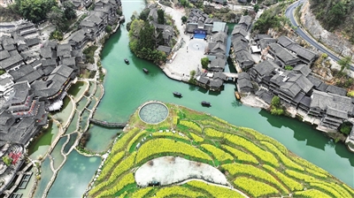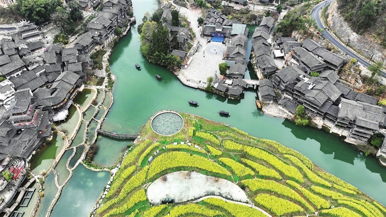 春日里,贵州省遵义市播州区乌江寨吸引许多游客前来游览,乐享春光。据悉,乌江寨国际旅游度假区依托恬静的山水自然环境和浓厚的黔北村寨民俗,集观光、休闲、度假、会展为一体,成为黔北旅游的一道美丽风景。