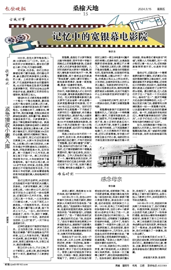 在那个没有电视、手机、网络的年代,电影院就是人们心目中的文化圣殿,看电影就是最好的娱乐方式。而太原宽银幕电影院又是太原市乃至全省第一家也是唯一放映宽银幕电影的电影院,它于1960年元旦正式开放。当时它的建筑外形及宽银幕一下子就成了太原市的又一重要地标,吸引着全市的影迷观众,就连外地人也要来此开眼“尝鲜”。那时,从我家往东走200米向南便是解放电影院,我隔上个把月还能享受一场5分钱的学生电影票,但仍顶不住宽银幕对我的诱惑。
