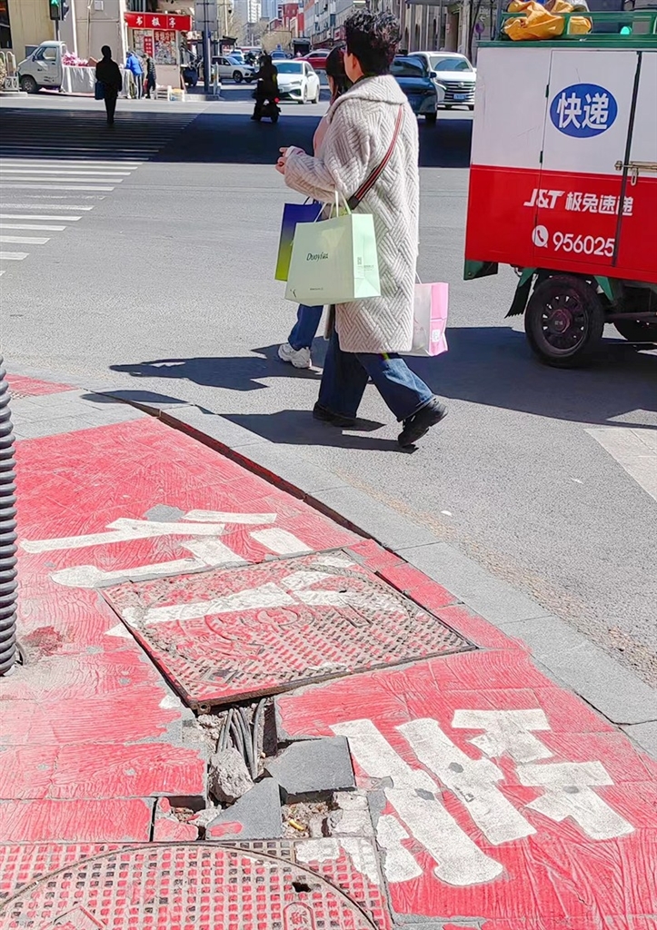 3月19日,记者在南肖墙与五一路交叉口的西北角便道上,发现地砖开裂,线缆裸露在外。这不仅影响市容市貌,还存在安全隐患,希望相关部门尽快处理。