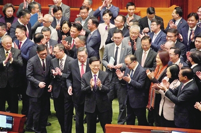 当日,香港特区立法会举行全体会议进行三读表决。投票结果显示后,议事厅内所有议员一起喝彩。