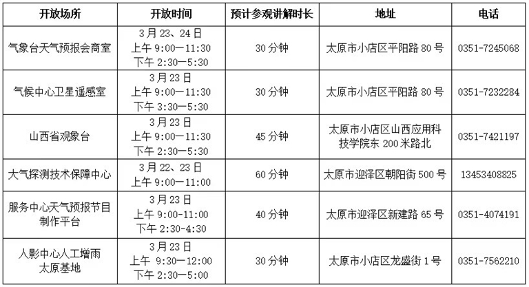 为使公众更好地了解我省气象工作,山西省气象台还开放气象科普场所,迎接公众参观。