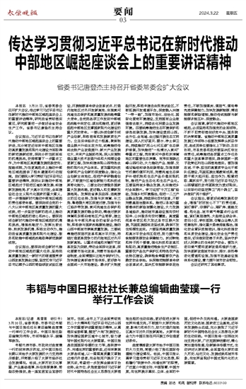 韦韬与中国日报社社长兼总编辑曲莹璞一行举行工作会谈