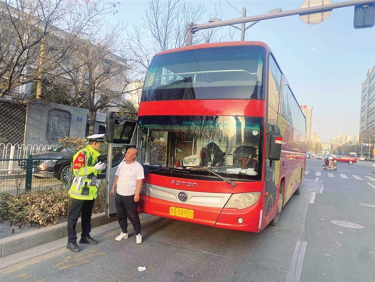 行动从当天下午2时30分开始,民警对途经辖区的大型旅游客车、单位通勤车逐一登车检查。