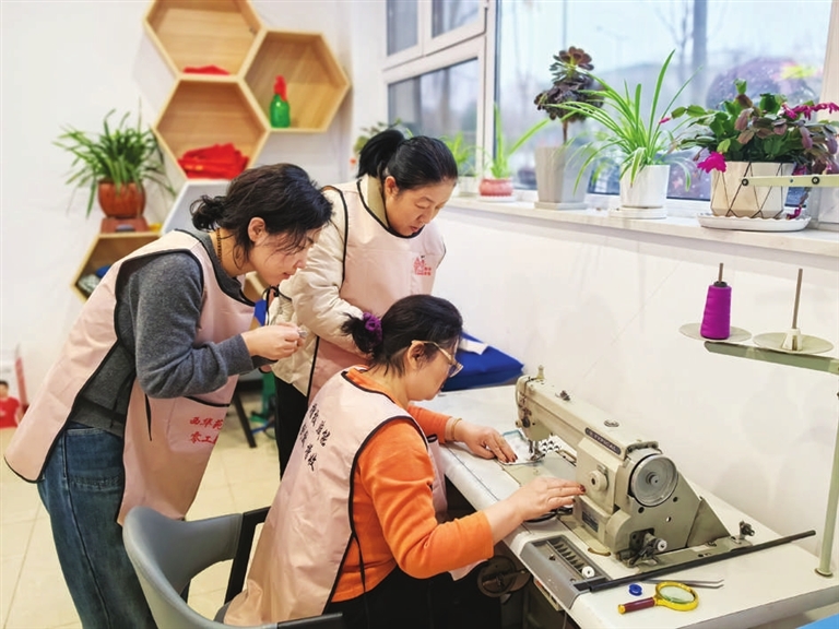 “张姐,我新买的裤子,有点肥,能帮我改瘦吗?”“来,坐下等会儿,马上就好。”张爱英调整缝纫机的引线器和线轮,对齐裤腿边缘后,咔嚓嚓地踩起踏板。在一阵“嗒嗒”声中,她熟练地将布料向前推进,再用锁边机把毛边处理好,很快就改好了。