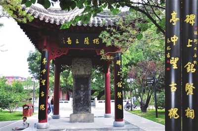 狄仁杰文化公园是在唐槐公园的基础上扩改建而成,于2020年12月正式开园。此次建园时在古槐前设一碑亭,将碑置于亭内,游人立于亭前,眼望古槐,心思先哲,悠然而生敬意。刘成卓先生的应征作品“碑上铭贤相,亭中望古槐”,“碑上”与“亭中”两个方位词相对,“铭”与“望”两个动词相对,“贤相”与“古槐”两个名词相对,对仗十分工稳,而且恰意恰境,确是一副好联。