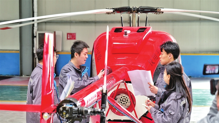日前,中北高新区内的山西公式航航空工业有限公司自主研发出ZH281A双座轻型运动直升机,取得中国民航局颁发的合格证和生产许可证,成为国内首家获批生产直升机的民营企业。图为3月27日,技术人员正在研究设计优化方案。