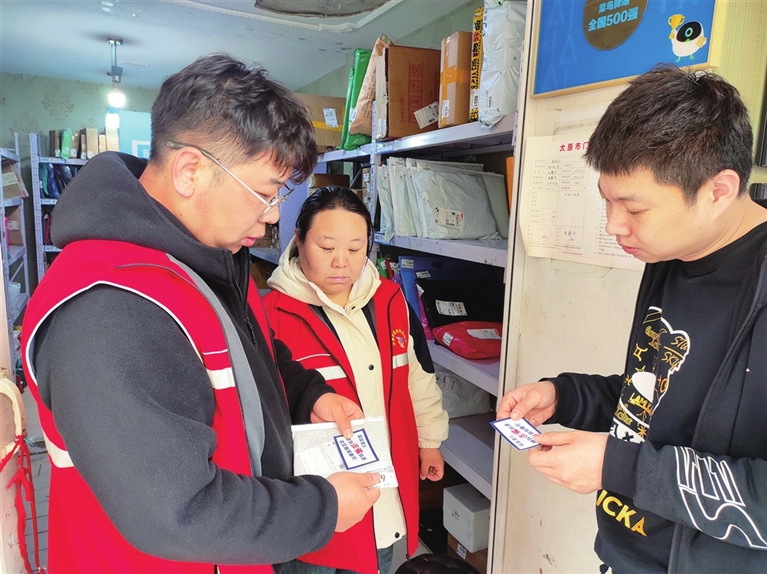 漪汾苑社区的网格员郭利斌、李江,收集了近期居民收到的诈骗快递,发现收件人的个人信息都在“裸奔”。并且,用手一摸,袋子几乎是空的。这样的快递,最可疑。他们制作、印刷了“反诈便利贴”,来到辖区各驿站,贴在可疑包裹上。这样,居民取件时,看到提醒会多个心眼。拆开若是正常快递,也没啥影响。