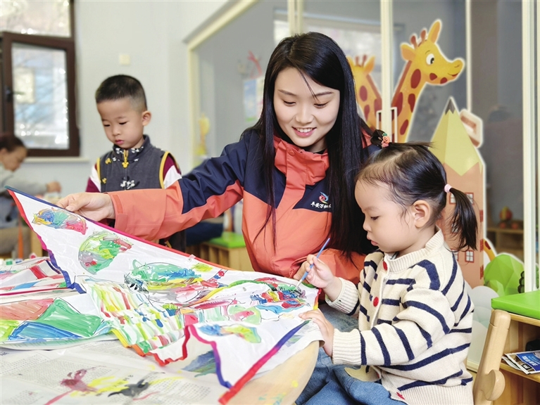 3月27日,漪汾苑社区的儿童之家很热闹,10余名学龄前儿童在家长的指导下,一笔一画,绘出心中所想,为空白的风筝穿上了美丽的“花衣”。完成后,孩子们来到户外,静等风来,放飞风筝。