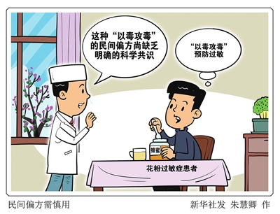 “蜂蜜中含有微量的蜂毒和花粉颗粒,有的花粉过敏患者希望通过少量、循序渐进地服用蜂蜜,‘以毒攻毒’来让身体接纳花粉,减少过敏的发生。”北京大学人民医院耳鼻咽喉头颈外科主任医师王旻表示,尽管蜂蜜具有一定的抗过敏作用,但这种方法并没有明确的科学共识。
