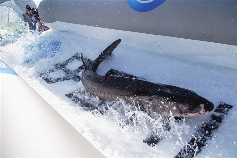 28日上午,湖北省宜昌市长江珍稀鱼类放流点,晴空如洗、江水澄碧。9时许,随着工作人员打开放流槽,一条条中华鲟从放流池中游出,通过滑道滑入长江。据介绍,现场放流中华鲟中,包括15龄成体中华鲟10尾、幼鱼20万尾、2龄中华鲟700尾、3龄中华鲟120尾等。