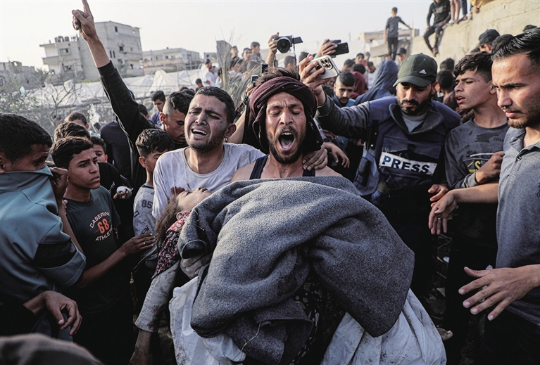 3月27日,在加沙地带南部城市拉法,人们从废墟中救出一名幸存者。据巴勒斯坦加沙地带卫生部门27日发布的数据,以军过去24小时对加沙地带的袭击共造成76人死亡、102人受伤。 新华社 发