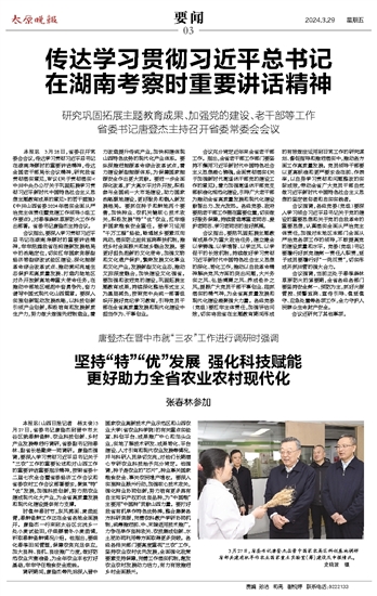 传达学习贯彻习近平总书记在湖南考察时重要讲话精神