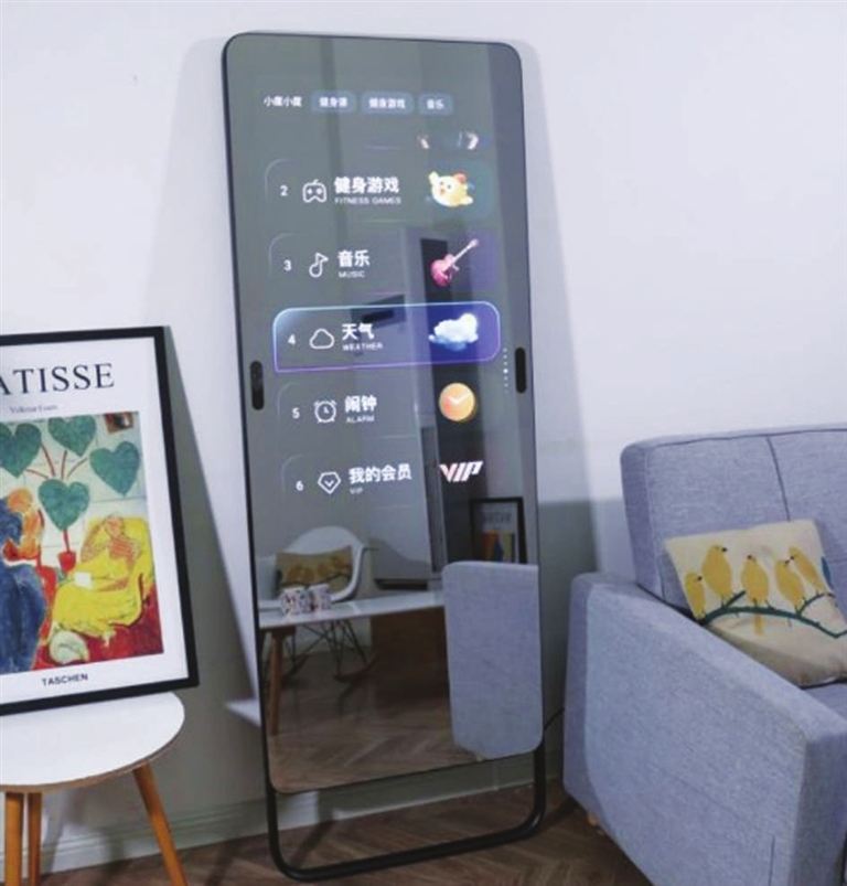 “魔镜魔镜,跳燃脂舞!”市民陈女士对着客厅一面镜子大声喊道。镜中随即出现了一连串燃脂舞相关课程。“想上第几节呀?”镜子问道。“第一节!”随着陈女士的回答,镜子迅速跳转到第一节,“Hello,镜子前的朋友,我是Lingo!欢迎你来到我的燃脂舞课程。现在让我们先来站直身体,双手打开,跟着我一起来做……”一位活力四射热情洋溢的健身教练瞬时出现在镜子中央,为镜子前的陈女士示范着燃脂舞动作。随着陈女士的跟练,镜子前的摄像感应装置还随时为其动作标准度打分做评价,一会是动作“尚可”,一会动作好到“出神入化”……等到运动结束,魔镜AI打出了综合评分A,并显示运动时长19分08秒,消耗能量158千卡,约等于一碗米饭的热量,还统计出这是她第125次完成运动。