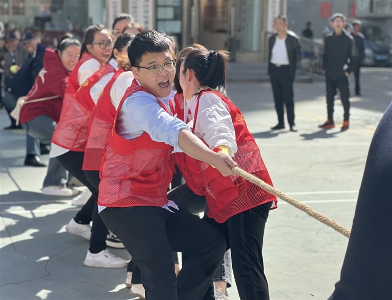 “我们是龙保社区全科网格员,我们的口号是甘于奉献,勇于担当……”3月30日一大早,在趣味运动会现场,参与比赛的运动员们个个摩拳擦掌、斗志昂扬,力求展现出自己最佳的水平。活动开始,在拔河比赛现场,气氛热闹非凡,趣味盎然。随着裁判员一声令下,比赛迎来激动人心的时刻,运动员们重心下移,前腿直蹬、后腿弯曲、凝神聚力,“一二拉,一二拉”“加油,加油”的口号声震耳欲聋,涨红的脸颊,显现的青筋,是居民之间力量的碰撞,是团结一心的体现。在跳绳比赛中,大家又化身为跳绳健将,手中飞快甩动的绳子,犹如条条彩龙在上下飞舞,绳子从脚下“嗖嗖嗖”地穿过,脚尖与地面有韵律地摩擦着,奏出一首首动听的拼搏乐章。