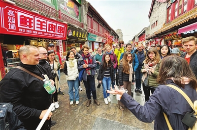 4月2日,来并演出的维也纳广播交响乐团艺术家们游览太原食品街。 邓寅明 摄
