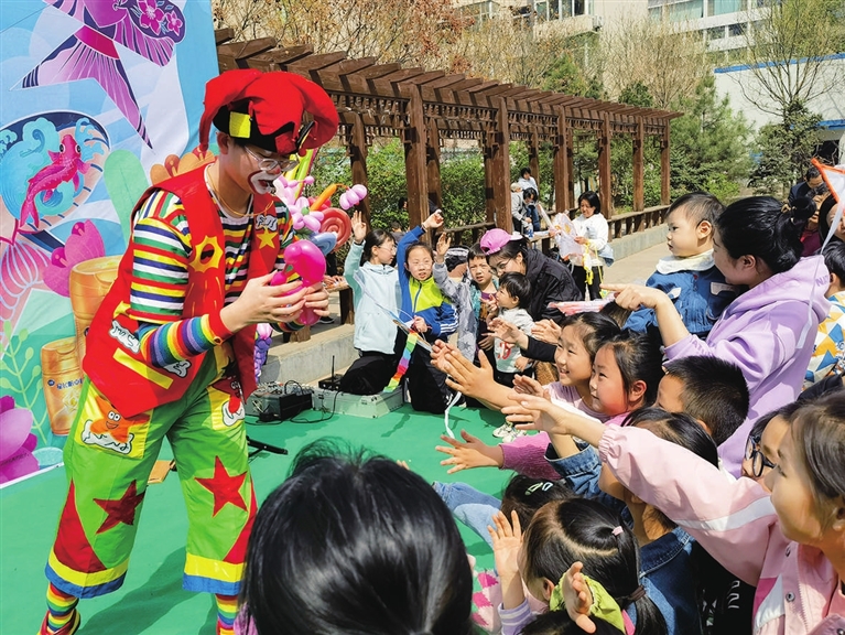 社区小广场上,小丑表演把大家带入一场“梦幻盛宴”,现场笑声、欢呼声不断。“这活动搞得好,‘一老一小’都考虑到了,生活在咱社区真幸福。”居民们开心地说。