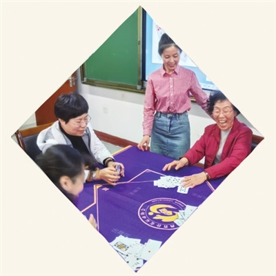“首次牌要洗5次至7次,把新牌的顺序完全洗开。”授课老师手握一副扑克牌,边讲解边演示,学员们聚精会神跟随老师的思路认真听讲。黑板上,电子课件显示着“掼蛋”洗牌、切牌与抓牌的规则,不时有学员举起手机拍摄,以备回家后巩固复习。“切牌的意义是啥?”“光说不行,咱实操一下就啥也明白了。”针对老师所讲内容学员们七嘴八舌热议开来。顺着问题,老师耐心地一一解答,直到大家茅塞顿开。
