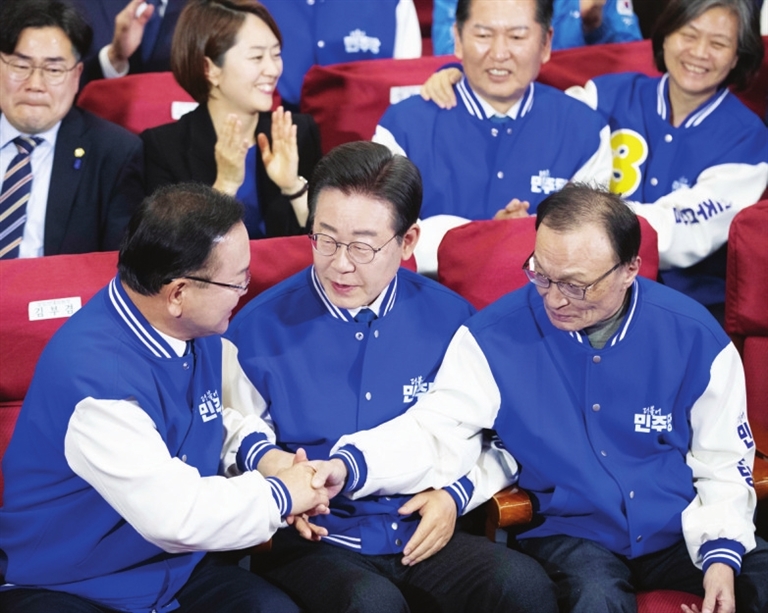 韩国三家主要电视台10日晚间公布的出口民调显示,第22届国会议员选举中,最大在野党共同民主党大幅领先于执政党国民力量党。