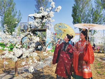“小姐姐们”选择自己心仪的汉服,化妆师进行简单妆造,立刻穿越回古代,手拿古扇或撑一把油纸伞,在梨树前摇曳生姿,拍摄一组古风照留念。王吴村小学的孩子们趁课间赶来,欣赏美景之余,争相体验手绘风筝、套圈等童年游戏,留下难忘的美好回忆。摄影爱好者和书画爱好者们也闻讯赶到,“长枪短炮”齐上阵,唯恐错过这梨园美景……