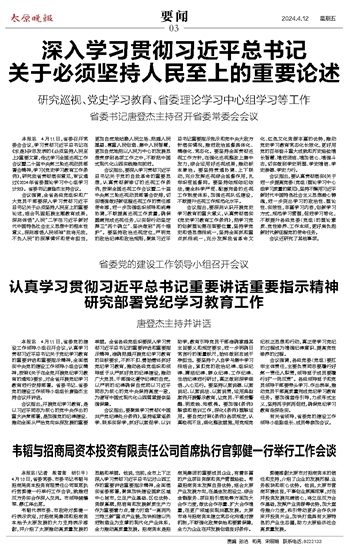 认真学习贯彻习近平总书记重要讲话重要指示精神 研究部署党纪学习教育工作