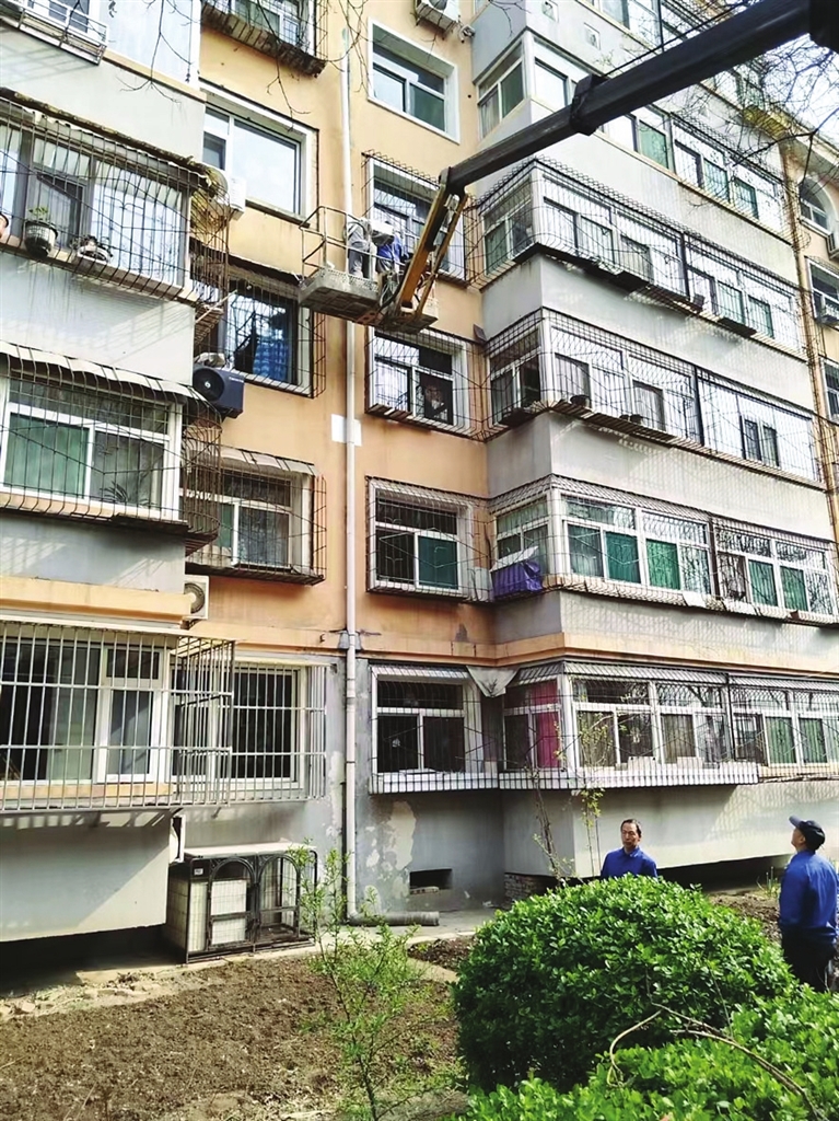 雨水管,是用来排放雨水的,如果有问题会影响排水。社区、物业当即安排更多人员,对小区所有雨水管进行排查,全部登记。紧接着,施工人员、高空作业机械进入小区,逐一更换或维修。截至4月12日,雨水管全部恢复畅通。