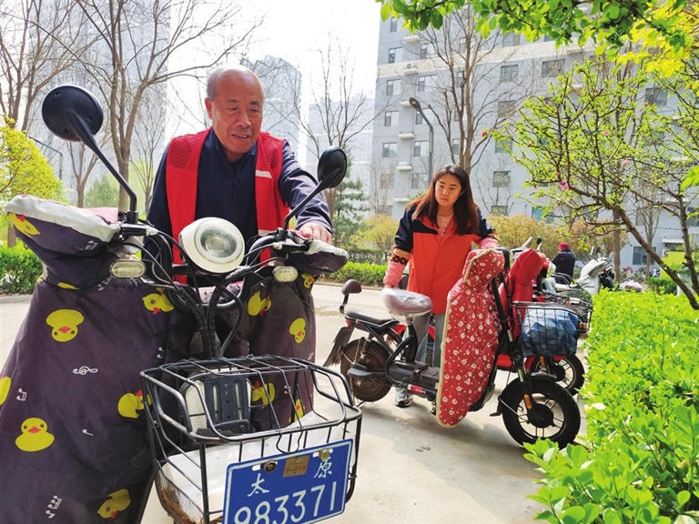 “电动自行车安全不可轻视,咱一定多提醒身边人,车子别推进楼道,电池也不能带回家充电。”玉门花园A区17号楼的楼栋长张国栋和网格员张婷玉组成了一支服务小队,每天早晚两次,他们都会在楼栋周围、楼道内走一遍,及时劝阻电动自行车乱停放或“飞线”充电等行为。