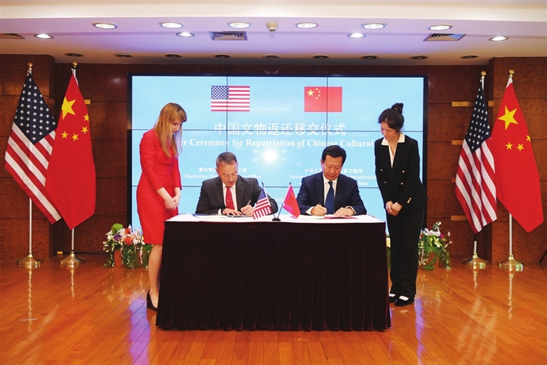 2009年1月14日,中美两国首次签署防止中国文物非法入境美国的政府间谅解备忘录以来,中美合作成功实现15批次504件/套流失美国的文物艺术品回归中国。此次返还是自2024年1月中美谅解备忘录有效期顺延以来,中美政府职能部门成功开展的首次文物返还合作。