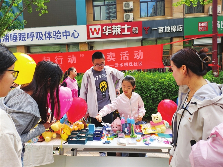 集市上,小朋友们带着自己的玩具、学习用品、闲置书籍、手工作品等,有模有样地当起了“小掌柜”。“可爱的小玩具,2元一个!”“快来瞧一瞧,看一看……”现场讨价还价声、吆喝声此起彼伏,热闹异常。“10元太贵了,5元行不行?”“行,请扫我的二维码吧!”“小掌柜”李晨熙年纪不大,但毫不胆怯,热情地招揽着“生意”。