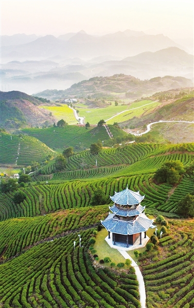 贵州省黔东南苗族侗族自治州丹寨县龙泉镇马寨村茶园春景。