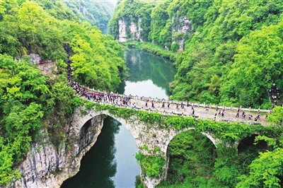 4月12日,贵州省福泉市第四小学的学生在葛镜桥研学。