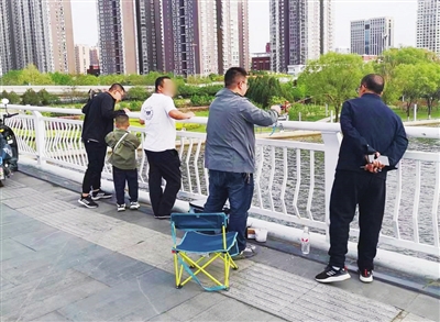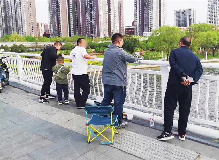 拍摄经过:4月21日,途经南中环桥南侧时,看到有人倚着栏杆在桥上钓鱼,引来不少路人侧目。桥上钓鱼影响城市形象,悬于空中的鱼线亦会给清理河面的景区工作人员带来安全隐患,希望相关部门加强监管,取缔此类不文明行为。
