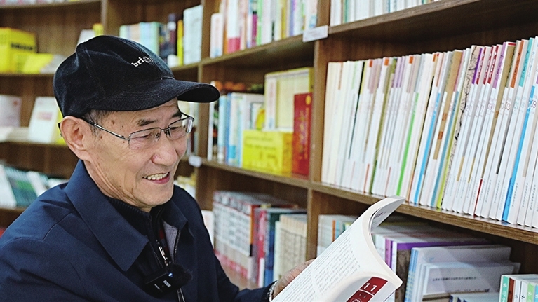 坐在图书馆里,64岁的靳建林正在翻阅《中国书法》,他是社区图书馆的“常客”,最喜欢阅读书法类书籍。他还常常带着7岁的外孙女来看书,一老一小相倚聚首读书,在书海中享受天伦之乐。“这里环境雅致又安静,是看书学习的好去处!”