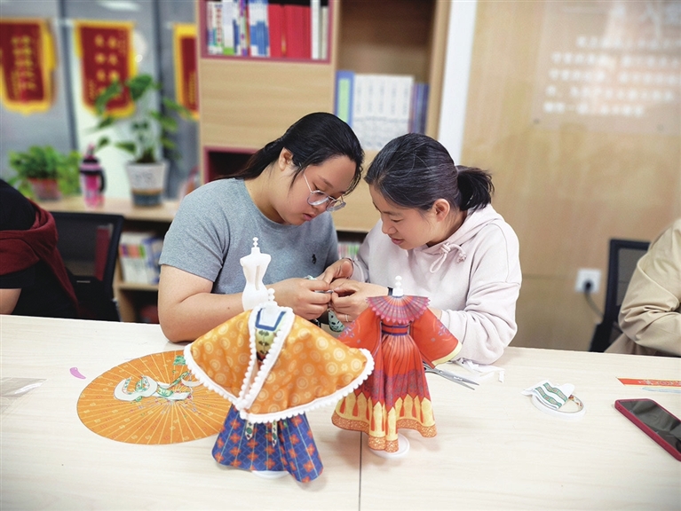 “不同衣服的花纹有着不同的释义,接襟、接袖、对中缝、上领四步……”志愿者老师讲得仔细,并手把手教授大家,通过在小模型上讲述制作汉服的方法,感受汉服之美。很快,在志愿者老师的指导下,一套套美丽的汉服便呈现在大家眼前。
