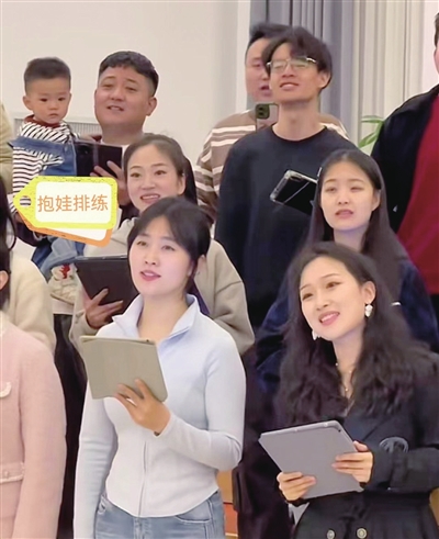 “没想到一个不经意的举动引发了网友们的热捧。”作为合唱团成员之一、山西省歌舞剧院独唱演员的郑垒,因一次“抱娃排练”成为“网红”。3月29日,合唱团排练《无名的人》这首歌,因当天爱人外出有事,为不耽误排练,他一手抱娃,一手持谱,坚持排练。视频一出,网友们被他的执着精神感染,用“热爱可抵岁月漫长”表达对他的敬佩之情。郑垒告诉记者,自己对合唱情有独钟,融入这支充满活力的队伍,感觉音乐生命力更加蓬勃、更加旺盛。