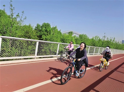 本次活动的骑行路线是沿太原滨河自行车专用道往南,骑行至晋阳桥,全程往返20多公里。骑行活动中,出现多个温馨画面:有的队员和爱人相约,来一场夫妻档骑行之旅;有的队员平日很少骑行,在大家的鼓励下,紧跟队伍,一直骑到终点……一路上,美景不断变换,大家谈笑风生,其乐融融。骑行活动还设置了打卡环节,每到一个打卡点,现场工作人员会在队员的脸上、衣服上贴上漂亮的贴纸,大家在轻松愉悦的氛围中,用骑行速度打开活力城市的开关,用绿色出行点亮城市环保的温度。一路经过的地方,都留下了大家的欢声笑语,沿途引来众多市民驻足观看,浩浩荡荡的骑行队伍成为自行车道上的一道亮丽的风景线。