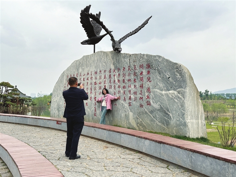 图为游人正在雁丘园拍照留念。 刘涛 摄